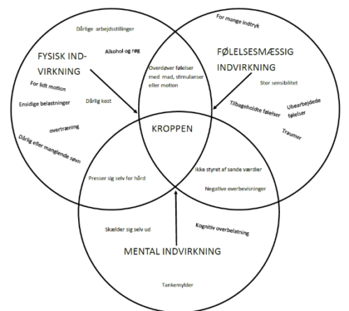 Når mennesker kommer i behandling, er deres udfordringer ofte et samspil mellem disse lag. Smerter i kroppen kan for eksempel have en fysisk årsag, men de kan også hænge sammen med tanker, stress eller følelser, der ikke har fået plads.